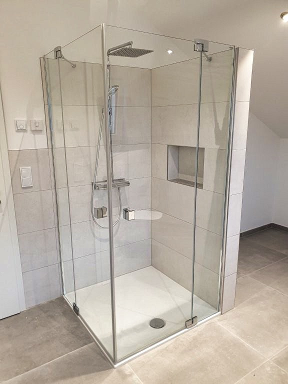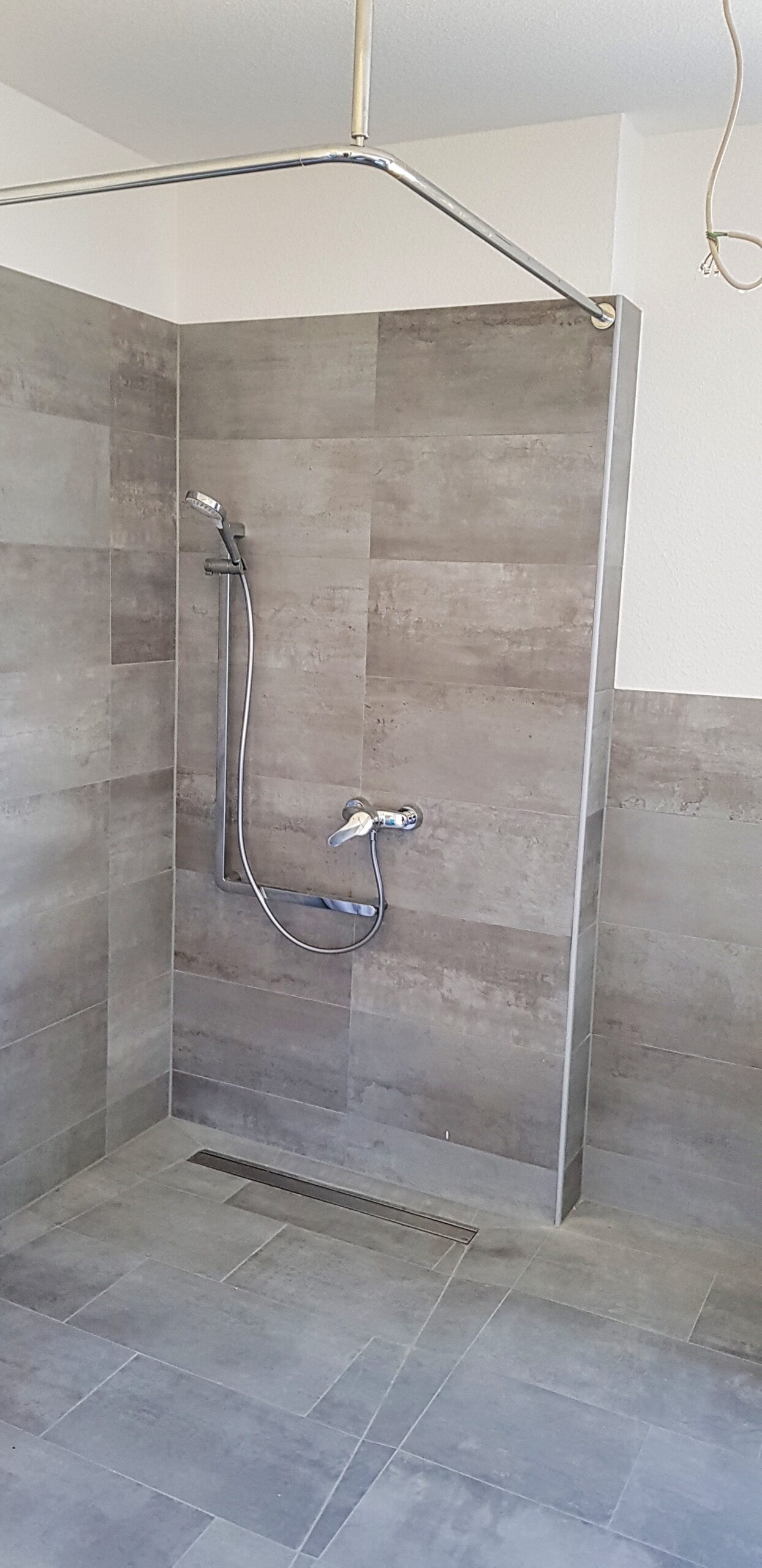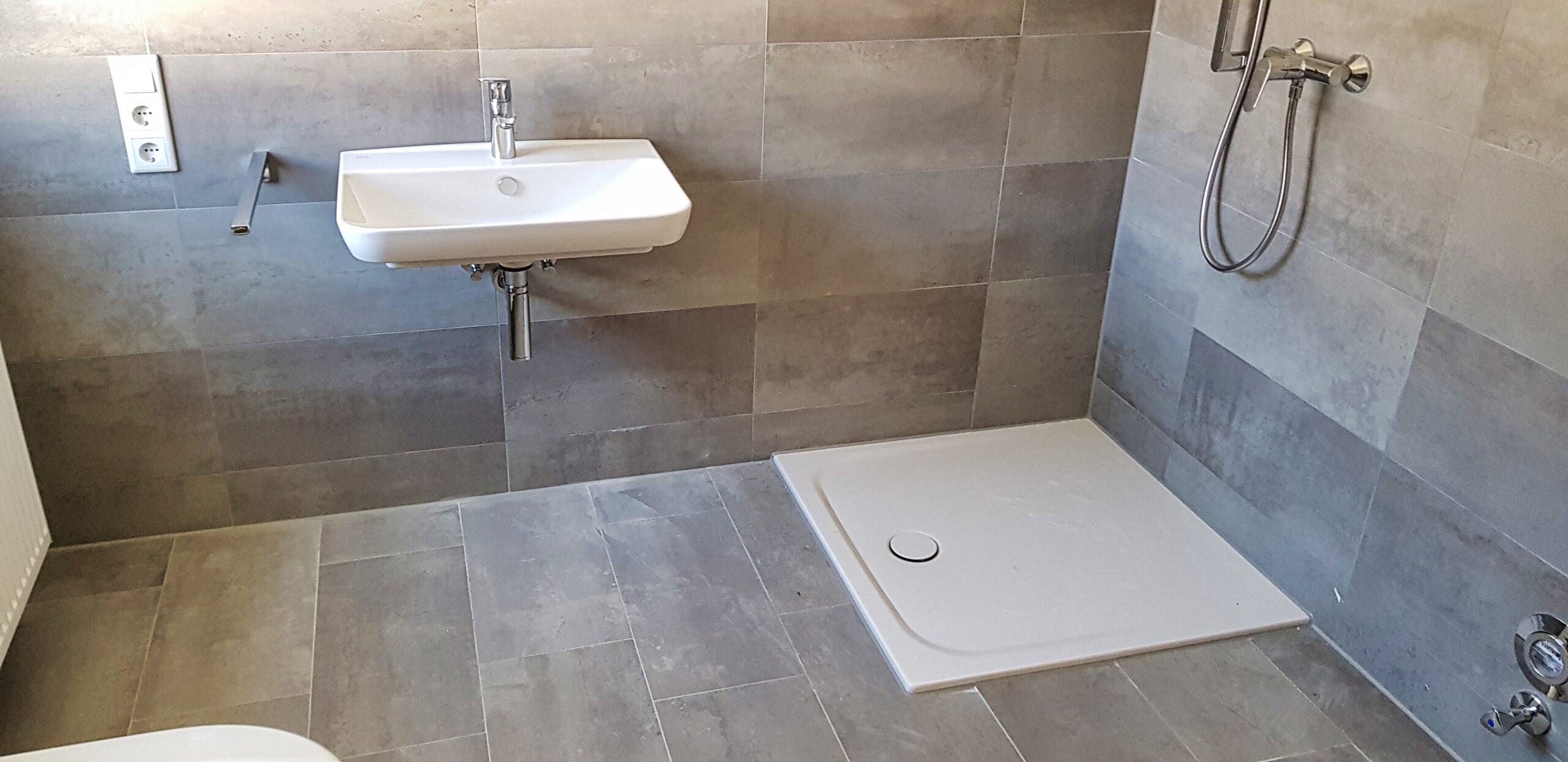 Die neue Dusche ist bodennah ausgeführt. Der Einstieg ist komfortabel und sicher. Der Raum wirkt offener und funktionaler. Die Lösung verbessert die Nutzung, ohne den Grundriss zu verändern.
