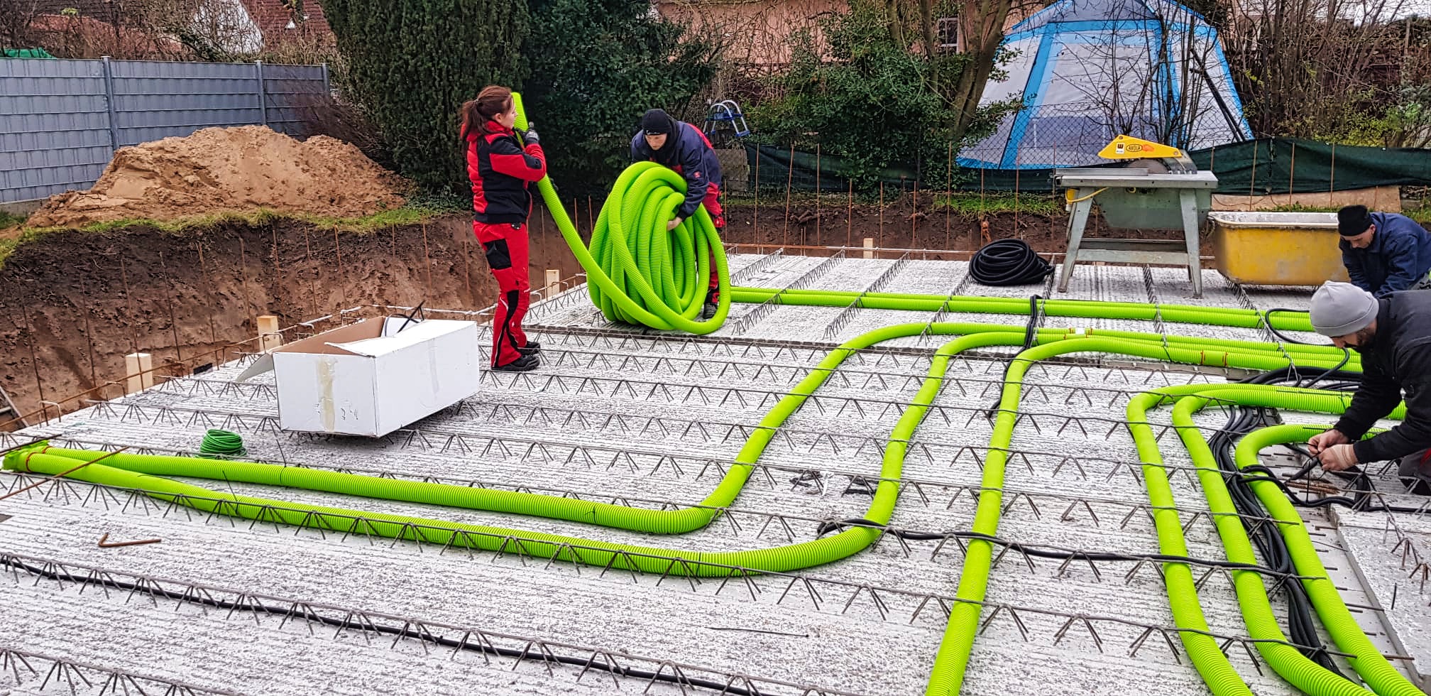 Für Erdkollektoren ja: ca. 1,5-2-fache Wohnfläche als unbebaute Fläche. Für Erdsonden reichen bereits 1-2 Bohrungen à 100 m Tiefe auf wenigen Quadratmetern. Wir prüfen, welche Variante für Ihr Grundstück geeignet ist.